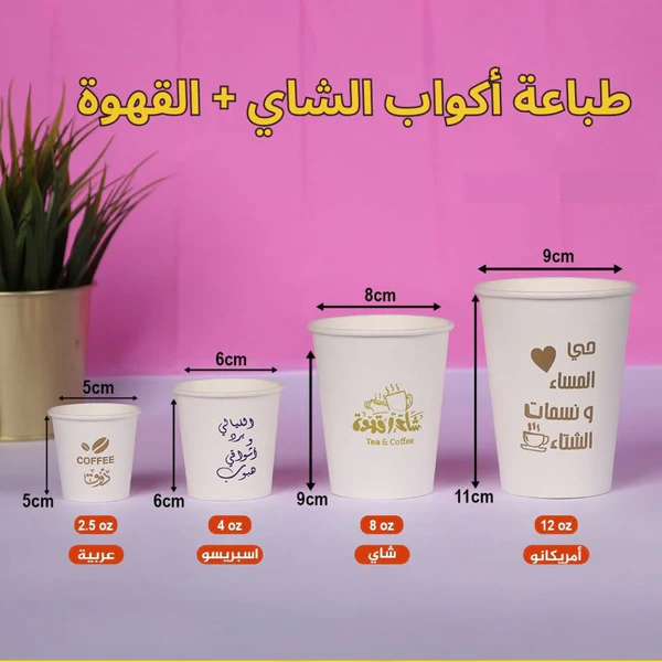 نقدم طباعة أكواب ورقية بأعلى جودة لتناسب احتياجاتك التجارية أو المناسبات الخاصة بطريقة مهنية وأنيقة.